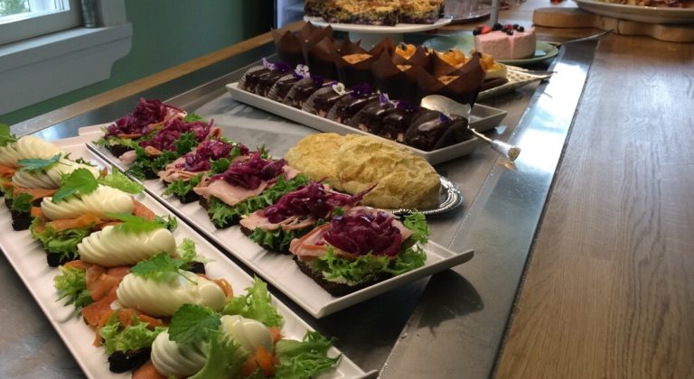 Hyödynnämme tarjoiluissa mahdollisimman paljon lähiruokaa sekä satokauden parhaita kasviksia, marjoja ja hedelmiä.